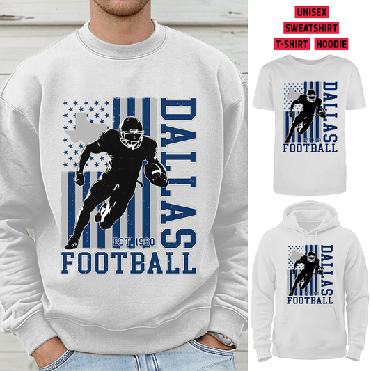 Vintage Dallas Football 1960 Flag USA T-Shirt/Sweatshirt/Hoodie, Unisex T-Shirt/Sweatshirt/Hoodie